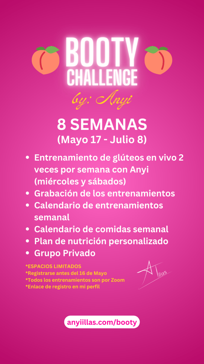 Aquí les dejo el enlace para que se inscriban: https://www.anyiillas.com/challenge-page/booty